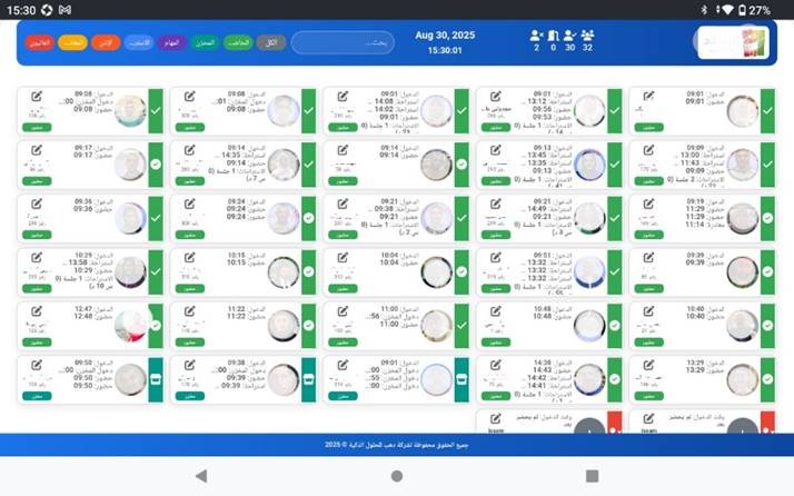 حالة جميع الموظفين مع الصورة وأوقات الحضور والانصراف بشكل مباشر.