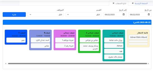 مناوبات العمل الصباحية، المسائية، والليلية.