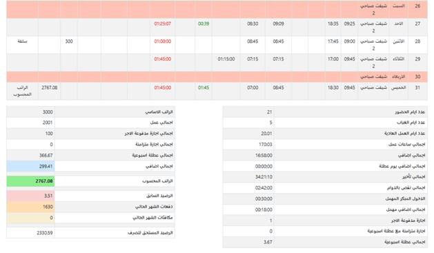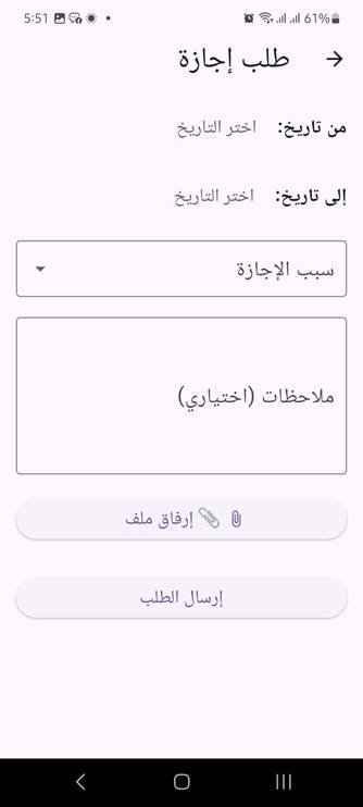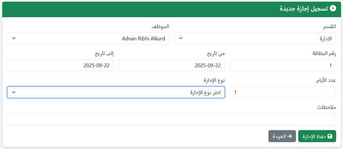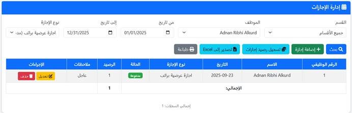 الإجازات المدفوعة وغير المدفوعة بجميع أنواعها مع إمكانية ترصيد الإجازات السنوية.
