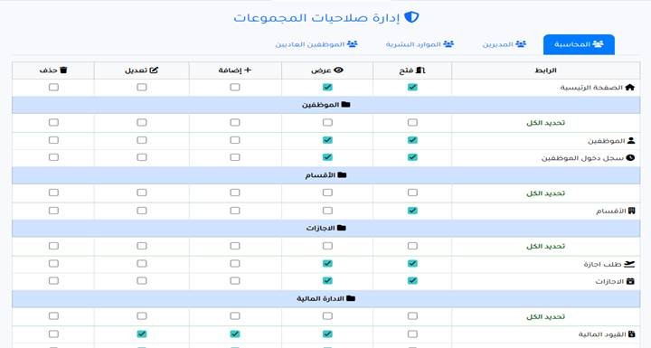 صلاحيات المستخدمين مع شاشة ادارة متقدمة: 👥