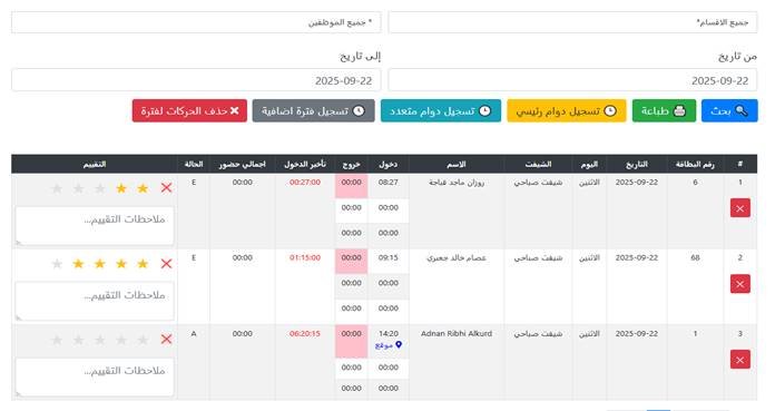 ملفات الموظفين عبر ساعة البصمة أو واجهة التطبيق.