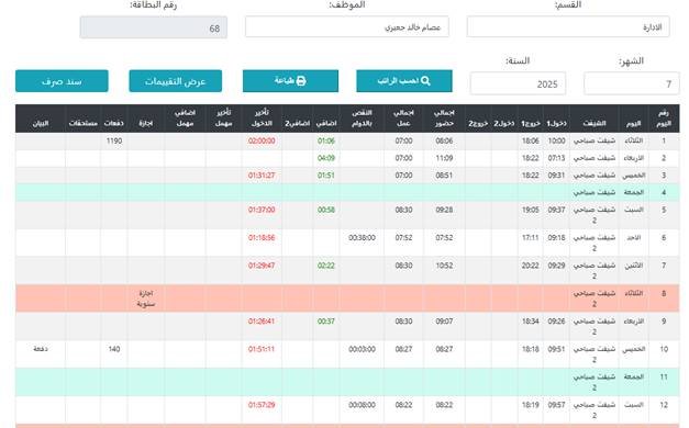 وقت البصمة، الموقع الجغرافي وصورة الموظف.