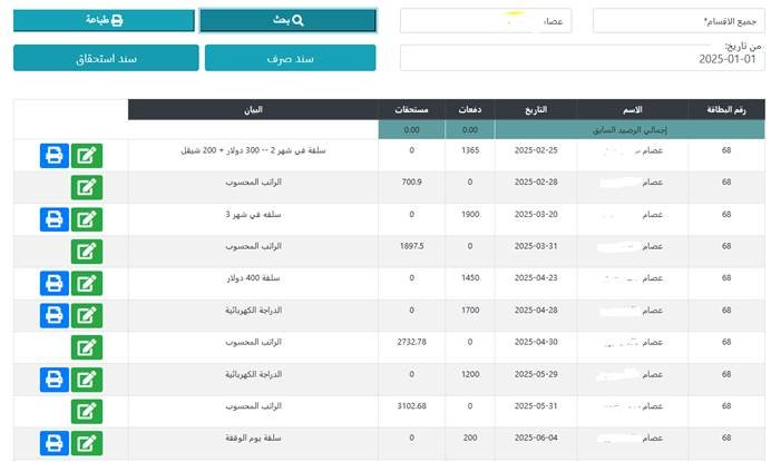 تقارير الاجازات السنوية مع الرصيد المتبقي لكل موظف.