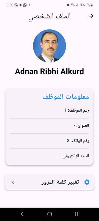 شاشة عرض الملف الشخصي وتغيير كلمة المرور.